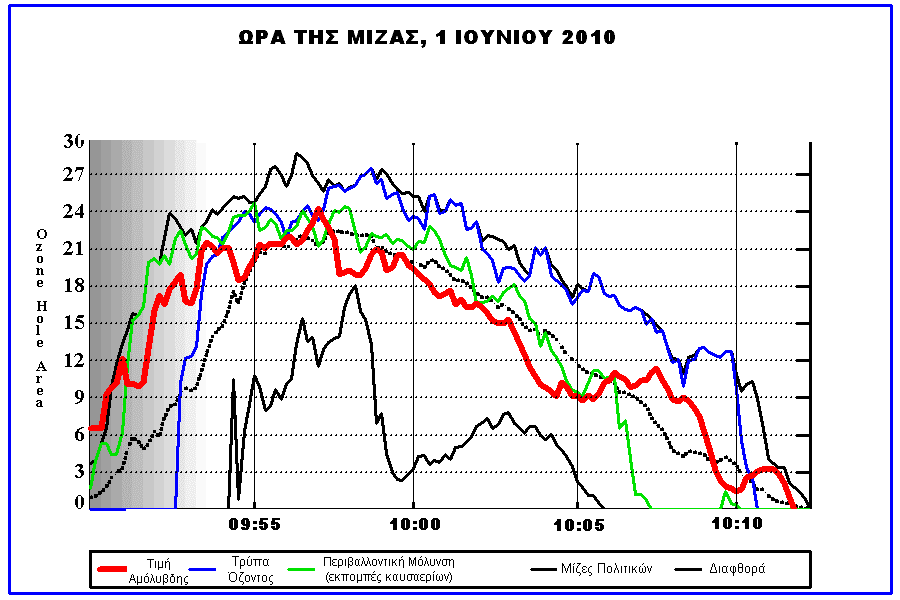 Ιδού πως κατέγραψαν τα υπερμηχανήματά μας (μυστική τεχνολογία Tesla-Fikioris) τη διακύμανση του όζοντος πριν, κατά τη διάρκεια και μετά το δεκαπεντάλεπτο (εικόνα 6).
